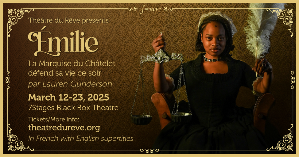 Join us for an exhilarating performance of "Emilie: La Marquise du Châtelet Defends Her Life Tonight," by Lauren Gunderson, performed in French with English supertitles!